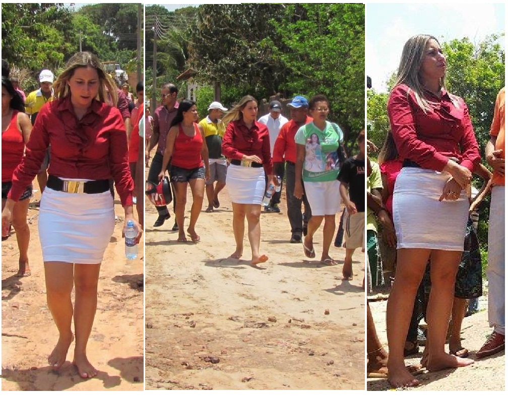 Senão, vejamos: Em uma de suas visitas às obras da cidade, a “prefeita mais jovem do Brasil”, como ela mesma se auto intitula, tirou os sapatos e começou a vagar descalça, querendo mostrar para o povo que é uma pessoa humilde, de pés no chão (literalmente).