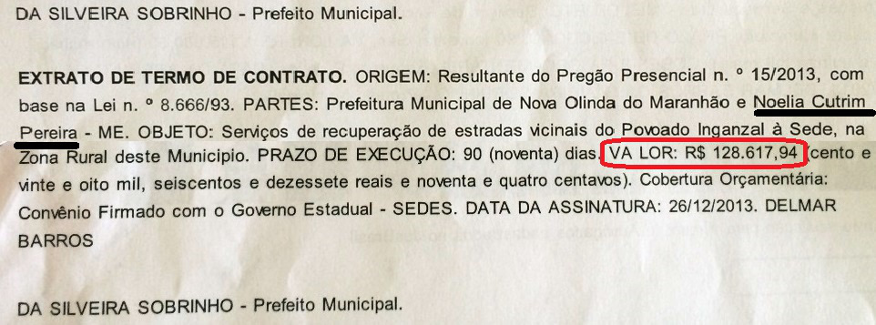 O BLOG vai revelar como Delmar teve a ideia de criar uma empresa em nome de Noelia, no dia 13 de novembro de 2013, às vésperas de realizar investimentos no município que administra. Vamos mostrar, inclusive, que em menos de dois meses de sua criação, a empresa da ‘quase primeira-dama’, foi contratada por duas vezes para prestar serviços de infraestrutura em estradas vicinais na zona rural do município pelo valor de R$ 708.779,66.