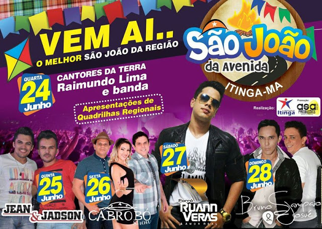 Na próxima quarta-feira (24) Itinga se transforma na Capital do Forró com a abertura do 6º São João da Avenida”, o maior arraial da região. A festa, que acontece entre os dias 24 a 28 de junho, atrai pessoas de toda a região e até dos estados vizinhos por sua beleza e decoração, que transforma parte da Avenida Presidente Médici em um grande arraial de acesso livre criado especialmente para as famílias itinguenses.