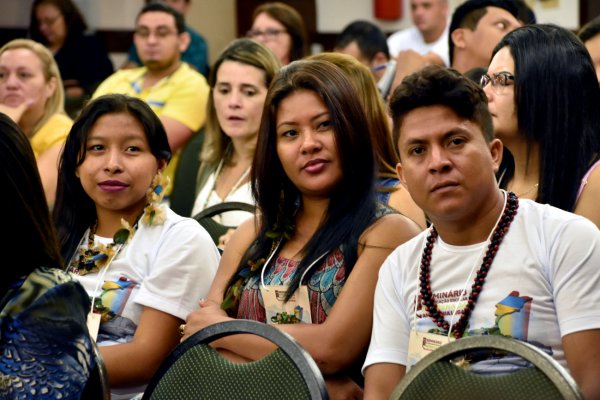 DEBATES – Na programação de debates, temas como formação de educadores, acesso, permanência e aprendizagem de crianças indígenas na escola, materiais didáticos, práticas pedagógicas e infraestrutura das escolas indígenas, que serviram de baliza para o plano de melhorias das políticas de educação indígena da Amazônia legal brasileira. O evento reuniu representantes de várias comunidades indígenas do Maranhão, incluindo professores, pais, alunos e lideranças. O prefeito de São Luís, Edivaldo, foi representado na solenidade pelo secretário Municipal de Educação, Geraldo Castro Sobrinho, que também é presidente da seccional maranhense da União Nacional dos Dirigentes Municipais de Educação (Undime – MA). Ele destacou que o momento é importante para se discutir e buscar metas para melhorar a educação dos povos indígenas brasileiros.