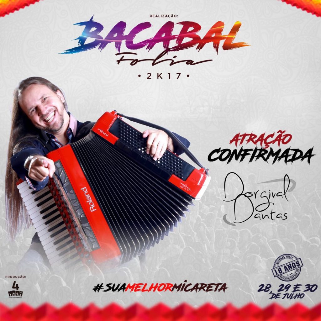 A diversidade de estilos musicais com toque baiano reunirá em três noites, grandes nomes da música brasileira no Bacabal Folia 2017 que acontece na cidade de Bacabal (cidade a 249 quilômetros de São Luís). São eles: Rafa e Pipo Marques, Bell Marques, Léo Santana, Durval Lélys, Jonas Esticado, Dorgival Dantas, Patckanka e a maior dupla do país Jorge e Mateus., compõem uma programação especial da micareta que é hoje, considerada a maior e melhor do nordeste nos dias 28,29 e 30 de julho. Os trios que estarão presentes são os mesmos utilizados no carnaval de Salvador. As vendas estão permitidas a partir do dia 01 de abril, veja abaixo as atracões confirmadas: