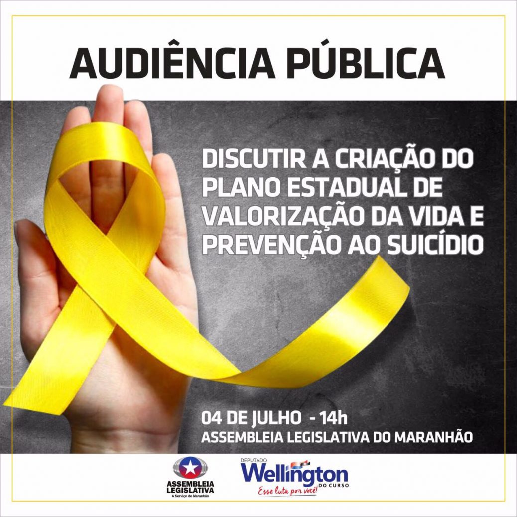 O deputado estadual Wellington do Curso (PP) utilizou a tribuna da Assembleia Legislativa, na semana passada, para convidar toda a população para uma audiência pública que discutirá o Plano Estadual de Valorização da Vida e o combate ao suicídio no Maranhão. A Audiência irá acontecer às 14h, da próxima terça-feira (04), no auditório Fernando Falcão da Assembleia Legislativa do Maranhão.
