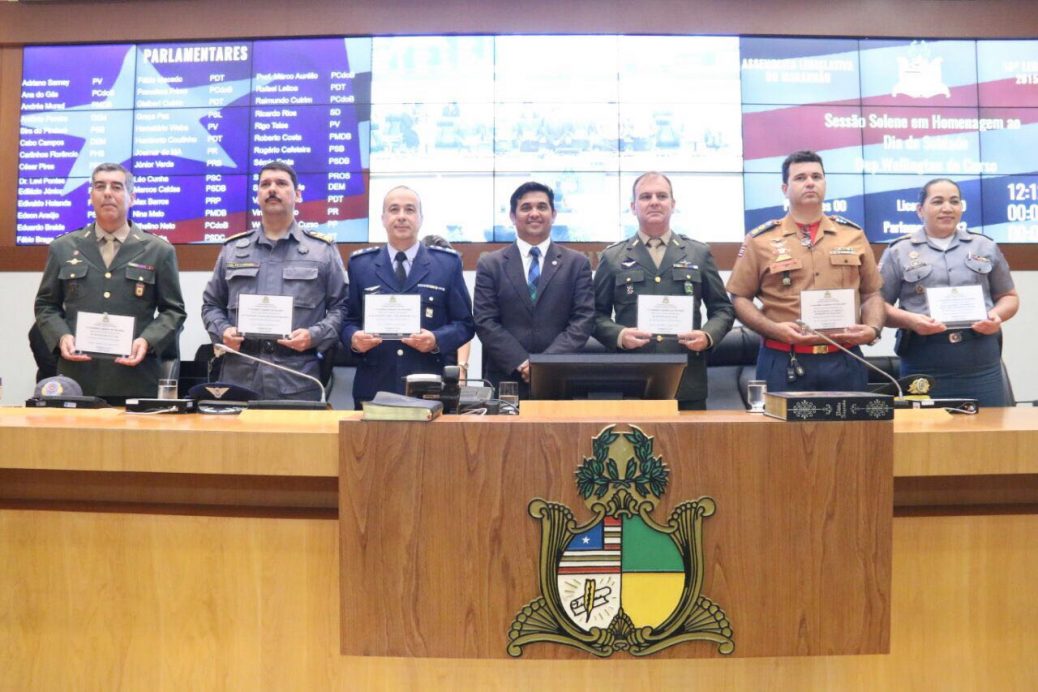 Ao fazer referência ao Dia do Soldado, celebrado hoje (25), o deputado estadual Wellington do Curso (PP) realizou, na última quinta-feira (24), uma sessão solene em homenagem à data comemorativa, contando com a presença de praças e oficiais do Maranhão. Estiveram presentes o Diretor do Centro de Lançamento de Alcântara, Coronel Engenheiro Luciano Valentim Rechiuti; Comandante Geral da Polícia Militar, Coronel José Frederico Pereira; representante do Corpo de Bombeiros, Coronel Roberth; do 24º BIL, na pessoa do Coronel Marcus Vinicius Soares Guimarães de Oliveira.