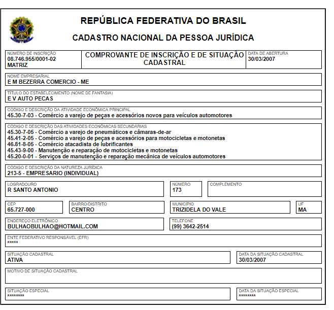 A empresa E M BEZERRA COMÉRCIO-ME, sediada no próprio municipal irá prestar os serviços.