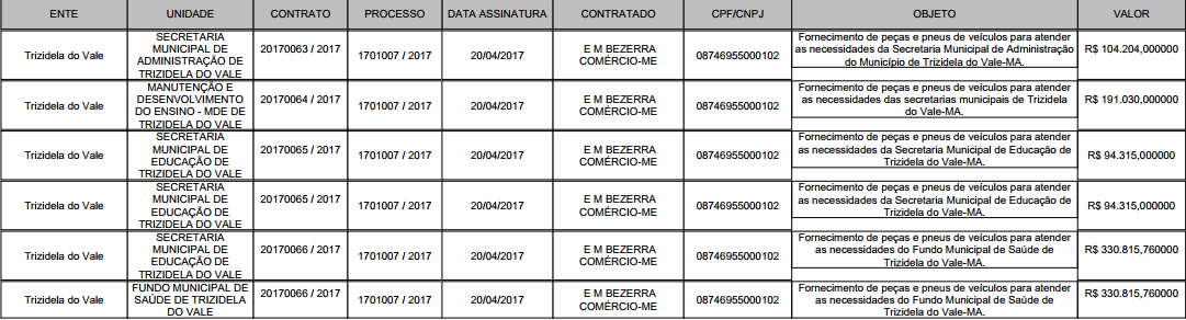 A farra em contratos milionários no município de Trizidela do Vale (cidade a 282 quilômetros de São Luís), continuam.
