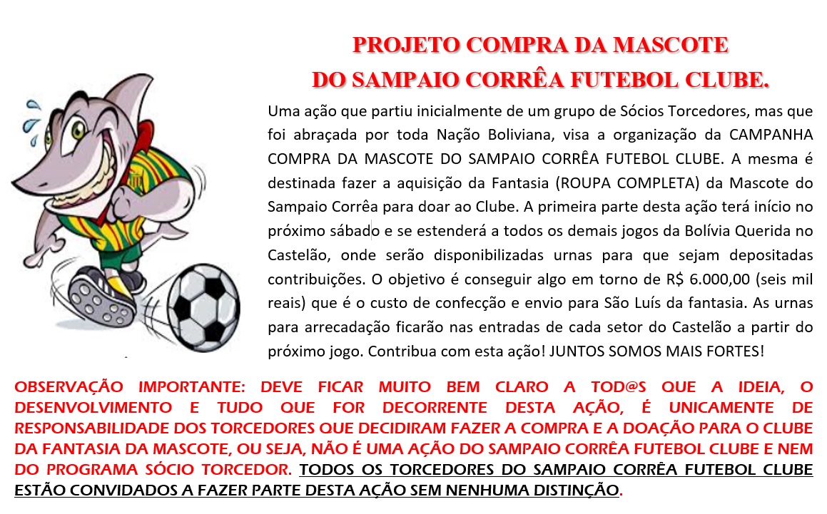 A campanha tem como objetivo a aquisição da Fantasia (roupa completa) do mascote do Sampaio Corrêa para doar ao Clube.