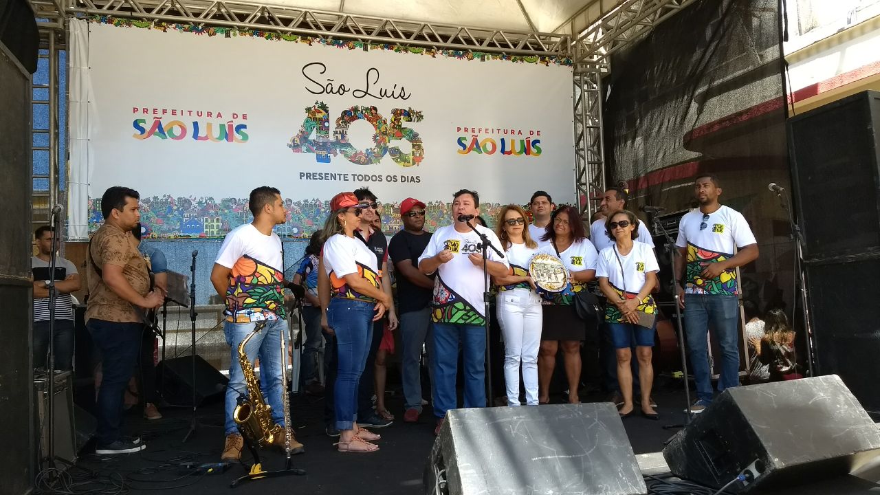 Ivaldo foi parabenizado no palco pela idealização e execução de sucesso do projeto Feirinha São Luís, recebendo uma uma obra de arte em cerâmica, feita pelo artista plástico ludovicense, Ribamar Carvalho, que expõe seu trabalho na “feirinha”.
