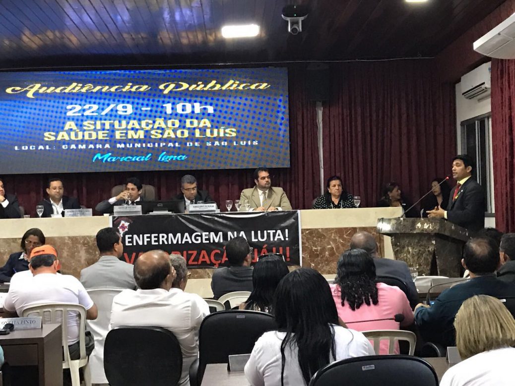 Durante toda a manhã desta sexta-feira (22), o deputado estadual Wellington do Curso (PP) discutiu sobre a situação da saúde pública em São Luís, capital do Maranhão. A audiência pública, que foi solicitada pelo vereador Marcial Lima (PEN), aconteceu na Câmara Municipal e contou com a presença do Secretário Municipal de Saúde, Lula Filho; da promotora de justiça em defesa da saúde, Dra. Glória Matra; do promotor da justiça em defesa do Idoso, Dr.Augusto Cutrim; da presidente do Conselho Regional de Farmácia, Maria José; além de vários vereadores.
