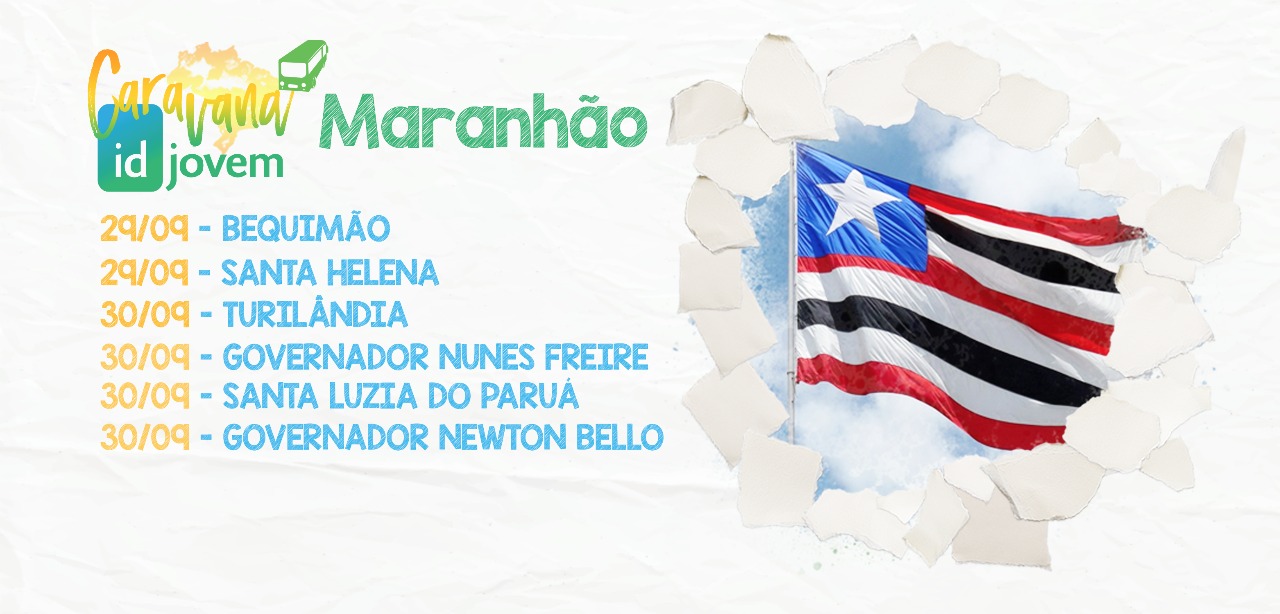 A Caravana ID Jovem, da Secretaria Nacional de Juventude, volta ao estado do Maranhão entre os dias 29 e 30 de setembro para o lançamento do programa em mais seis cidades. A Identidade Jovem beneficia brasileiros de 15 a 29 anos que pertencem a famílias com renda mensal de até dois salários mínimos. O secretário Nacional de Juventude, Assis Filho, vai participar dos lançamentos em Bequimão, Santa Helena, Turilândia, Governador Nunes Freire, Santa Luzia do Paruá e Newton Bello.