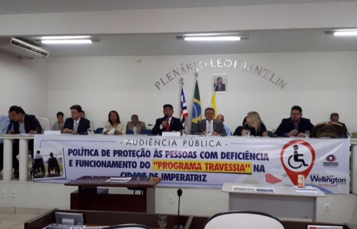 O deputado estadual Wellington do Curso (PP) realizou importante audiência pública na cidade de Imperatriz. O objetivo foi discutir sobre os direitos das pessoas com deficiência e contou com a representatividade do Movimento das pessoas com deficiência; de Joaquim Ribeiro de Sousa, Promotor de Justiça de Imperatriz; de Dielane Vasconcelos, assistente social participante do Movimento da Pessoa com Deficiência de Imperatriz; de Fidelis Uchoa, Secretário de Planejamento do município; Audilene Monteiro, Coordenadora de Mulheres com Deficiência do Maranhão; Verador de Açailândia, Irmão Jorge (Podemos); Pastor Alex Nunes Rocha, Vice/Prefeito de Imperatriz; vereador José Carlos (PV), presidente da Câmara e a maioria dos vereadores da Câmara Municipal de Imperatriz.