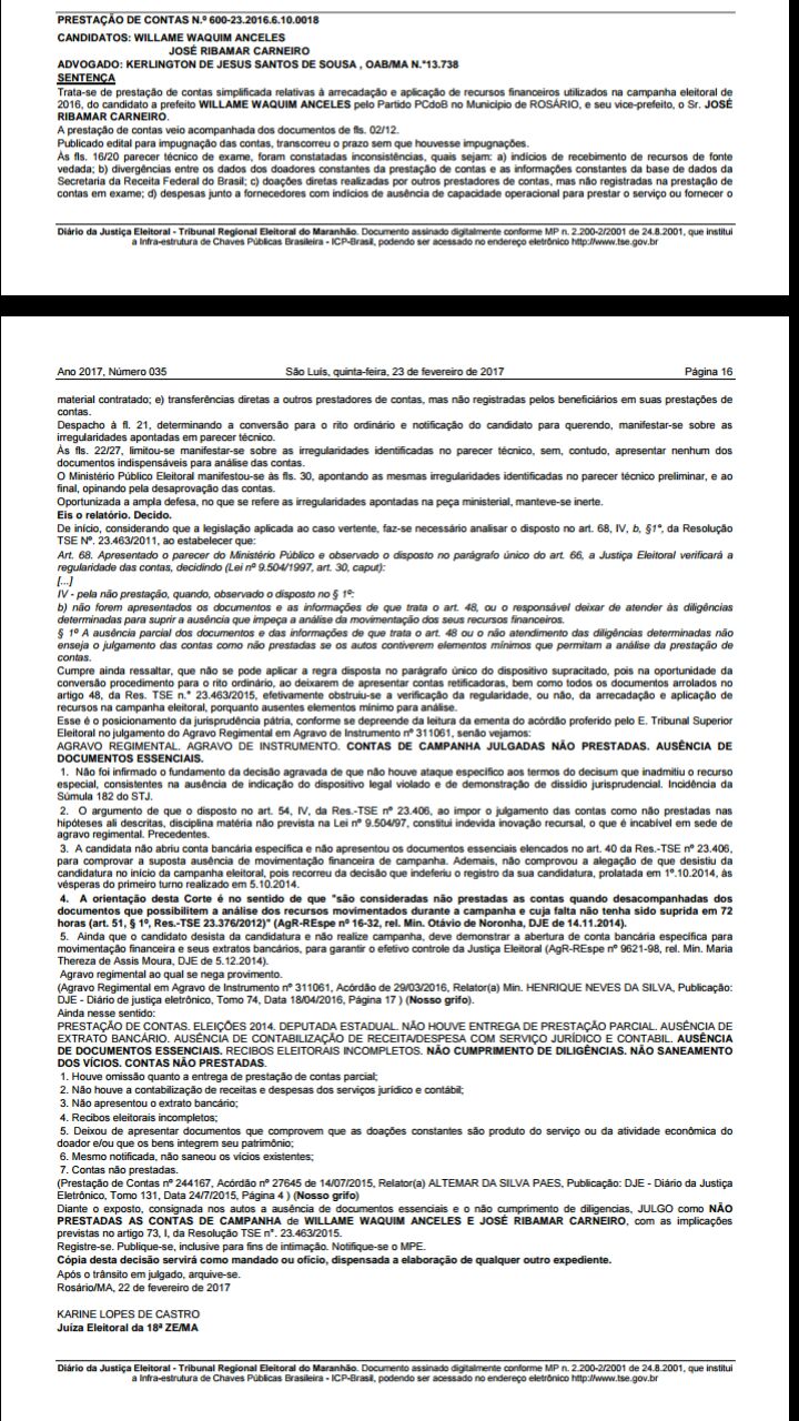 O diretor regional de saúde de Rosário, Willame Anceles (PCdoB) foi tornado inelegível por oito anos pelo pleno do Tribunal Regional Eleitoral (TRE-MA). A medida afeta também seu então candidato a vice-prefeito, José Ribamar (PDT).