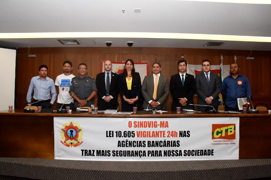 A Audiência Pública convocada pelo Deputado Zé Inácio (PT) e realizada nesta terça-feira 28/11, no auditório Plenarinho da Assembleia Legislativa, debateu e reafirmou a legitimidade da Lei de autoria do parlamentar que assegura vigilância armada 24 horas nas agências bancárias de todo o Estado do Maranhão. A audiência foi convocada para ratificar as ações que estão sendo realizadas para o efetivo cumprimento da Lei 10.605/17.