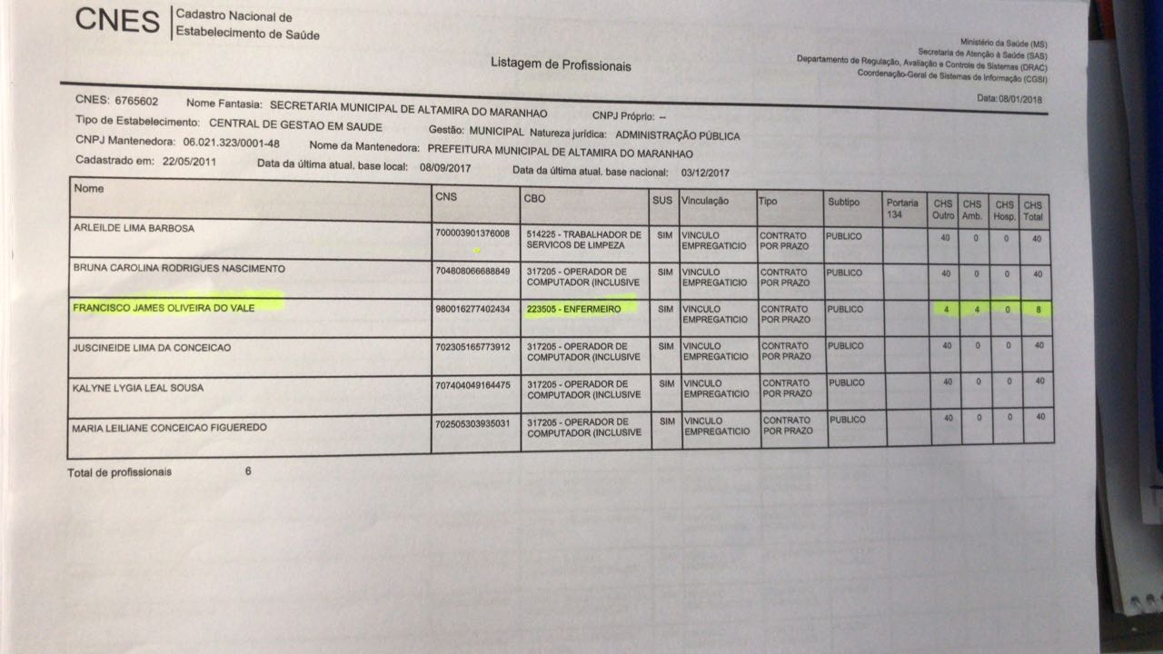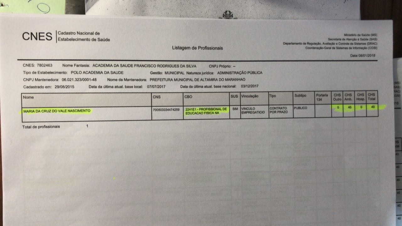Mas segundo informações de servidores dessas unidades, não há registro de um dia sequer em que o pai do prefeito tenha colocado os pés nessas unidades para trabalhar pelo menos uma hora/dia. Já a mãe do secretário de Saúde Will Valle, de nome Maria da Cruz do Vale Nascimento, além de professora contratada da rede estadual de ensino, presta serviço na pasta do filho na condição de profissional de Educação Física, com carga horária de 40h semanais, sendo que na escola do Estado ela trabalha no turno matutino com a mesma carga horária.