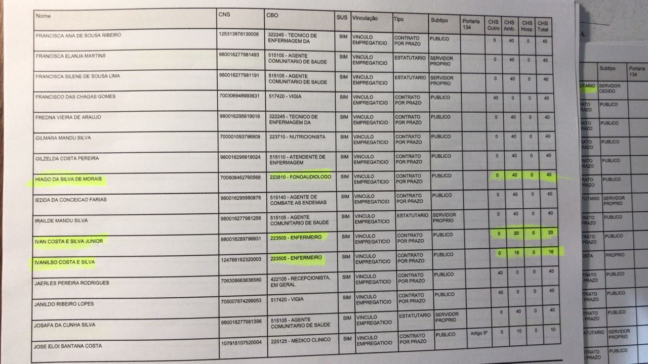 E a farra com o dinheiro público não para por aí. Além da mãe, o secretário Will do Vale mantém o primo enfermeiro, Francisco James do Vale, como funcionário da rede municipal de saúde e duas primas, Bruna Caroline Rodrigues Nascimento e Elma Gleice Nascimento de Oliveira, em cargos estratégicos na pasta. Outro auxiliar do prefeito muito agraciado com cargos para parentes é o secretário de Planejamento, Ivan Costa e Silva. Seu filho e seu irmão, Ivan Costa e Silva Júnior e Ivanilson Costa e Silva, ambos enfermeiros, são também contratados da Secretaria Municipal de Saúde. O Secretário de Obras, Teodoro Batista, também deu um jeitinho e colocou seu filho, o fonoaudiólogo recém formado Hiago da Silva de Morais, também como contratado da Secretaria de Saúde.